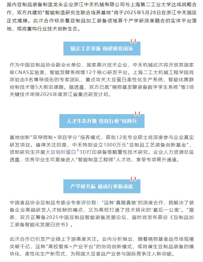 产教融合再添标杆!九游老哥J9俱乐部官网机械联袂上海二工大打造豆制品装备研发新高地